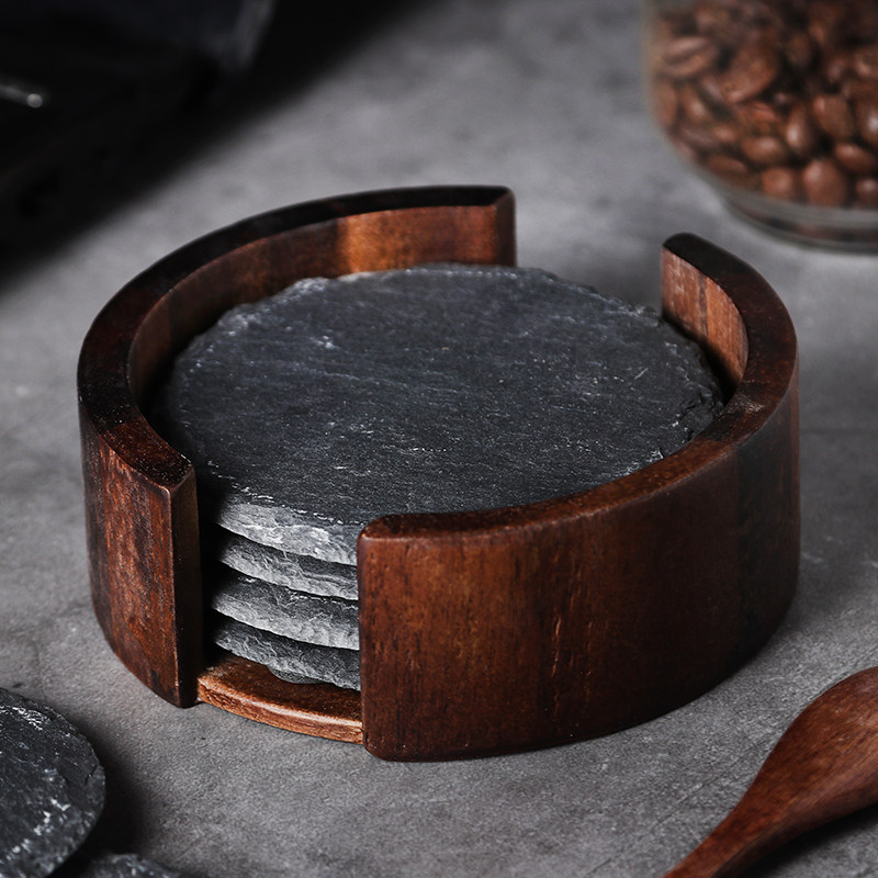 Porcelain wood One Nordic Slate Household tea accessories Tea cup Heat insulation tea saucer Tea mat Gongfu Tea tea tray coaster