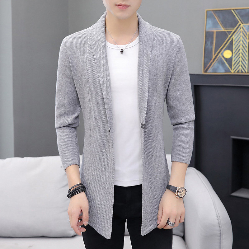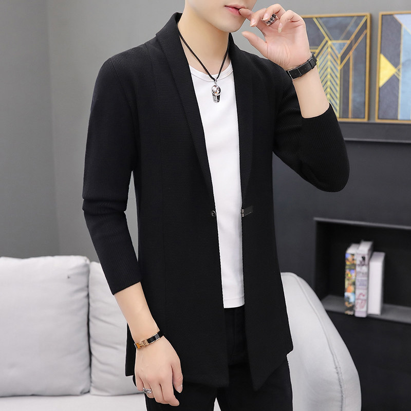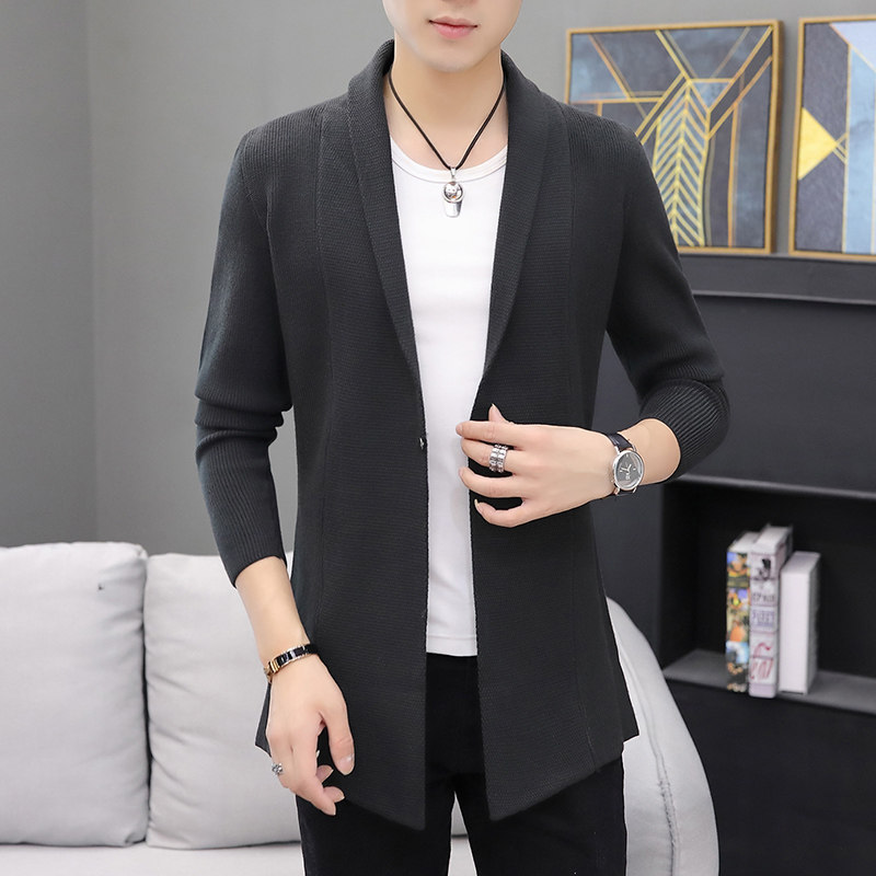 Cardigan men's sweater mid-length outerwear spring and autumn Korean style slim trend casual thin liner jacket sweater