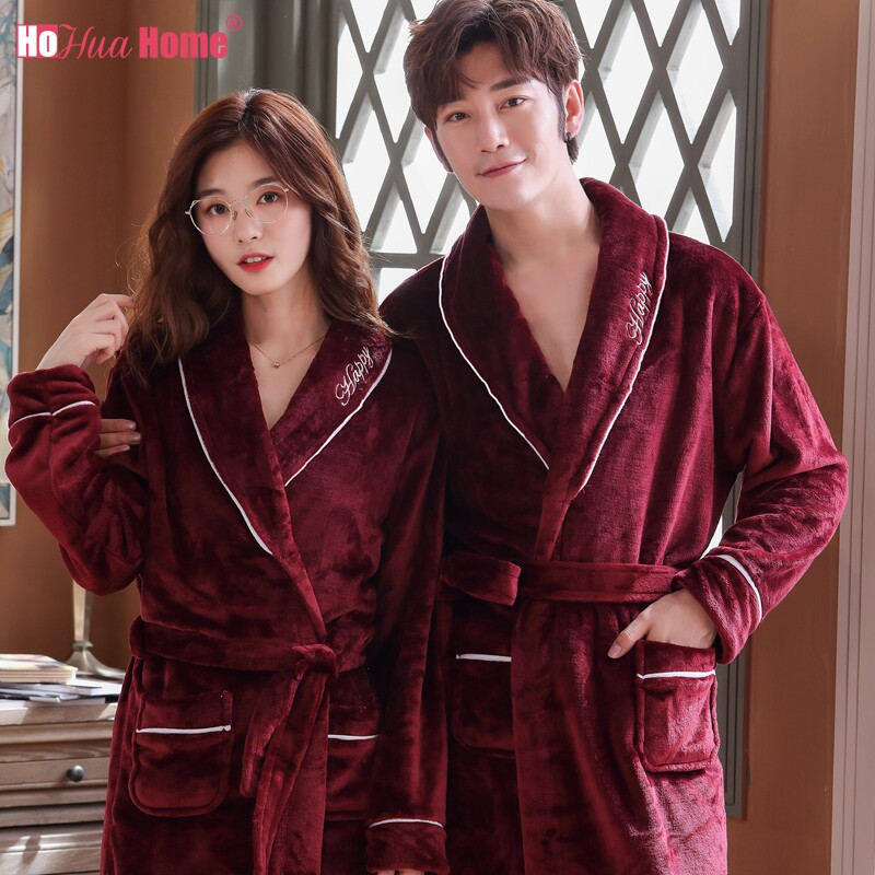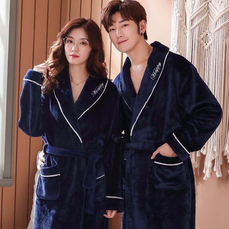 Nightgown Women's winter couple pajamas Autumn and winter thickened flannel long version bathrobe men's coral velvet spring and autumn a pair