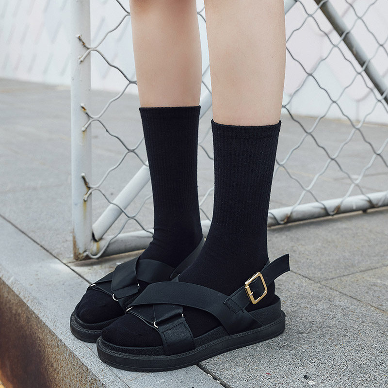 Socks women's mid-tube socks isn't trendy cotton Korean street couple solid color black stockings stockings men's four seasons cotton