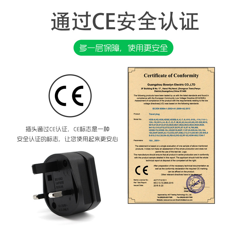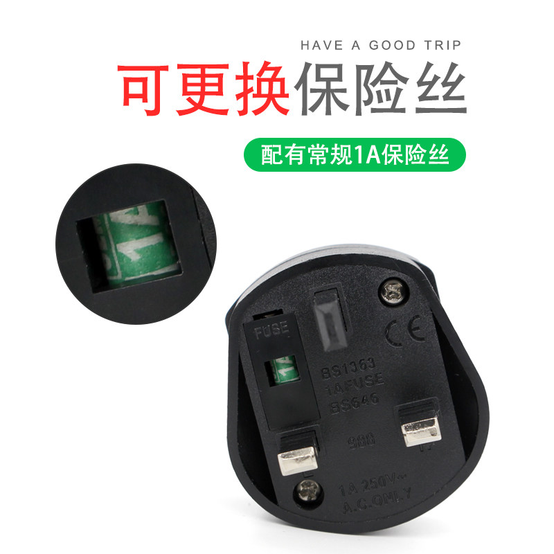 Travel English standard conversion plug with fuse Hong Kong Macau power converter mobile phone tablet charging use