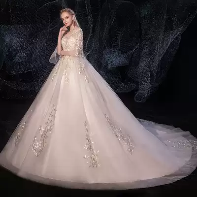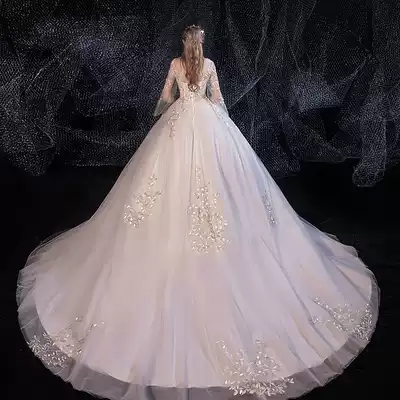 Large size pregnant woman light main wedding dress 2021 New temperament bride simple atmosphere long tailed thick arm small man