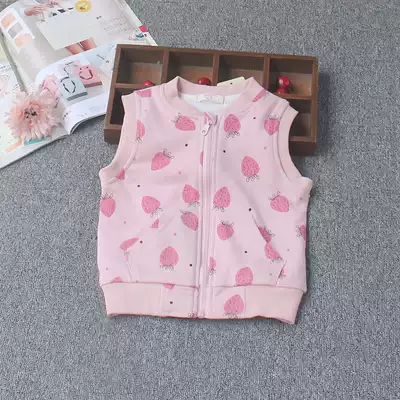 Girl Vest Spring and Autumn 2021 New Children's Vest Thin Strawberry Printed Kids Cotton Mash Shoulder Baby Cardigan