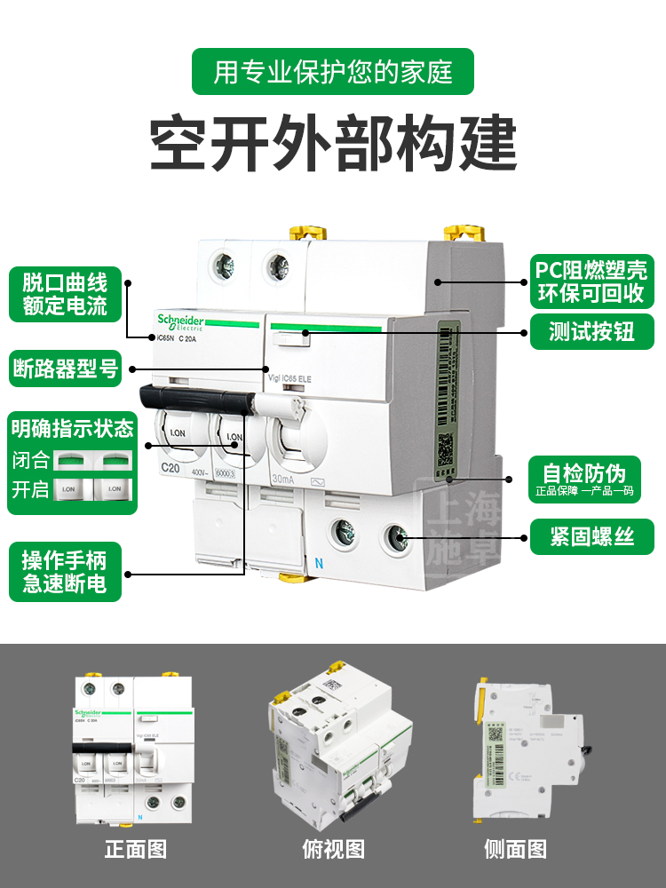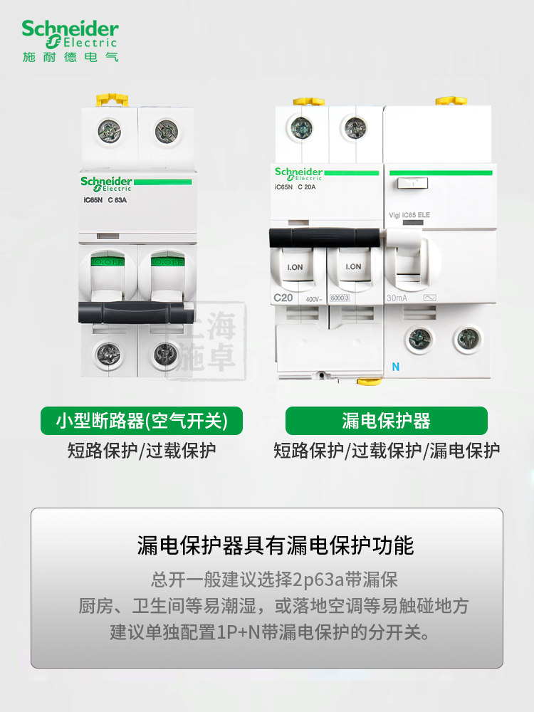 Schneider circuit breaker A9 air switch IC65N with drain D type earth leakage protector 2p63a Industrial