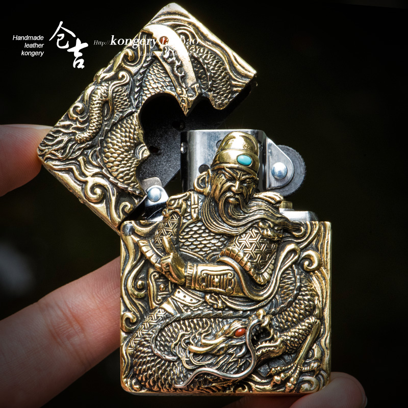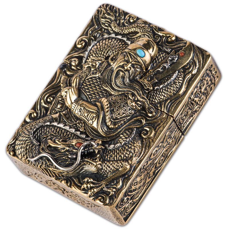 Cangji handmade Guan Gong lighter brass kerosene lighter six-sided carving retro dragon pattern four-phase runner