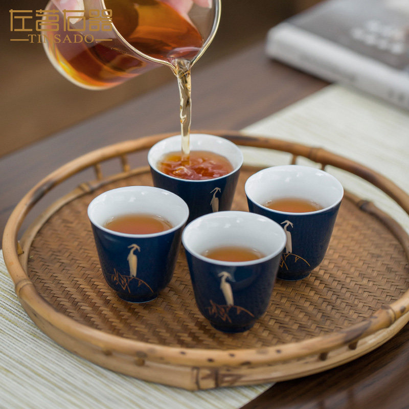 Left Tea right instrumental blue glazed tea cup men's tasting cup Kung fu tea with master's cup personal special ceramic small single cup