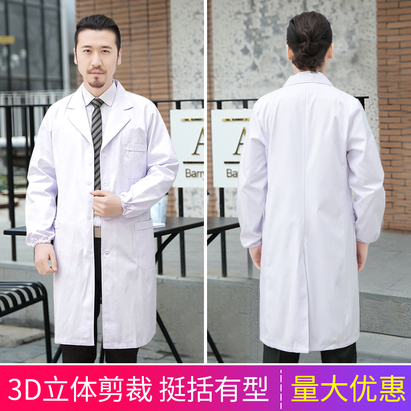 Five rings Jingcheng white coat long sleeves elastic cuffs Doctor female experimental student Chemical beauty salon Nurse overalls