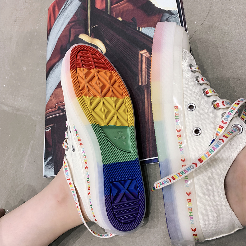 Zhang Bebeibell Fall's new rainbow Canvas Shoes Schoolgirl Korean version online Red 100 hitch a little white shoe