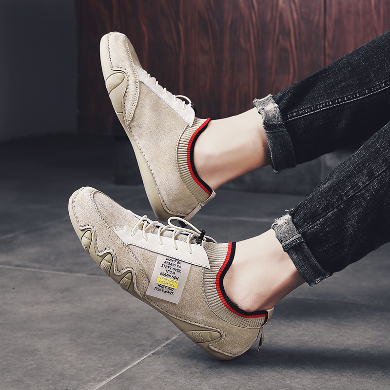 Spring men's shoes breathable 2022 new trendy shoes men's casual shoes all-match leather shoes men's leather lazy beanie shoes men