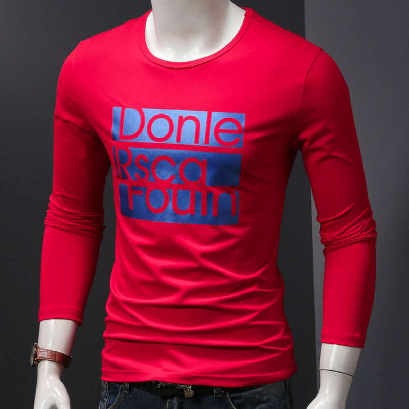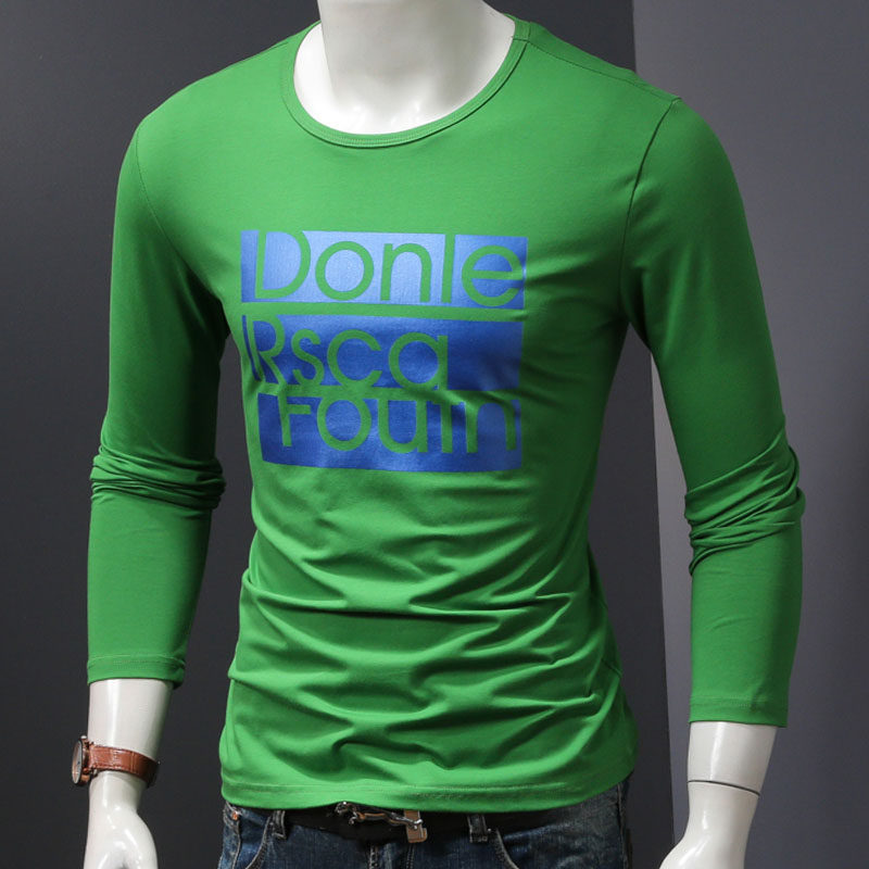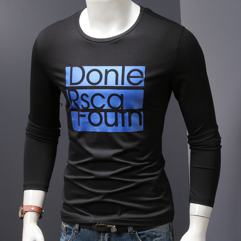 Cotton bottoming shirt men's spring and autumn autumn clothes round neck long-sleeved T-shirt letter printing autumn clothes Korean version of the slim tide shirt