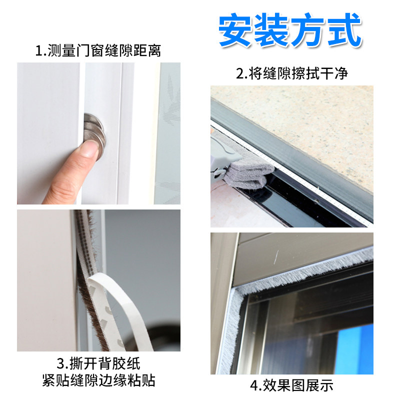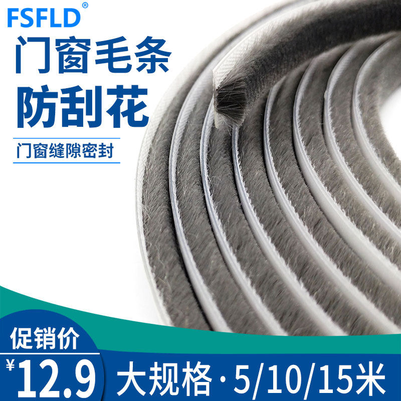 Sliding door windproof and insect-proof widened brush strip Door and window gap seal strip Plastic steel window sound insulation self-adhesive back glue Wardrobe door frame