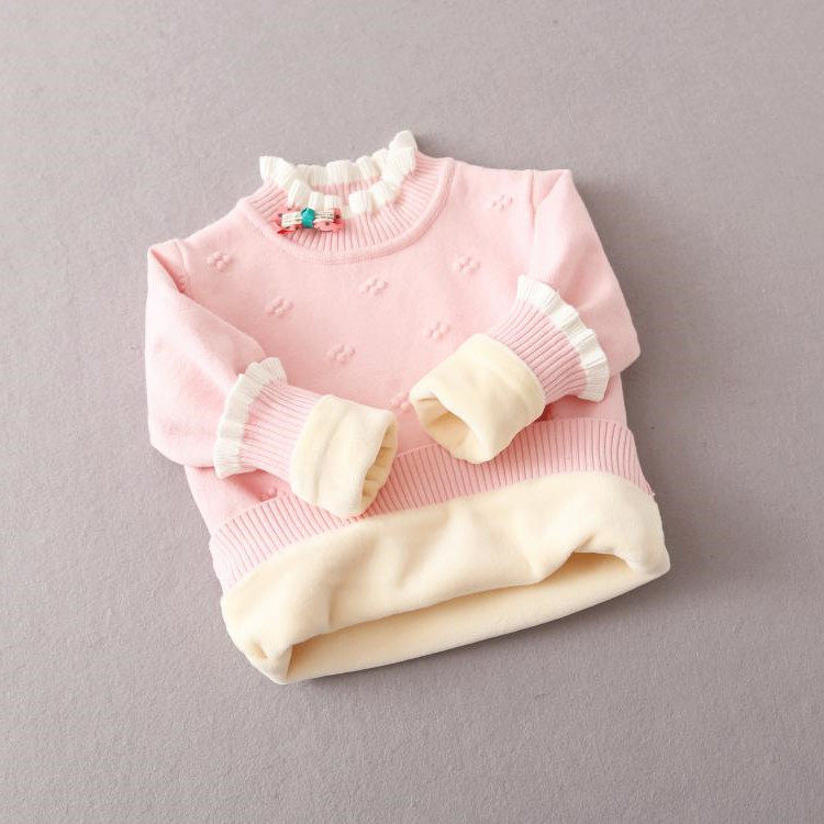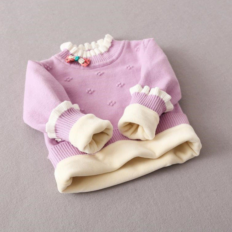 Girl sweaters Garnapped thickened autumn and winter pure cotton warm wool clothing Children with high collars undershirt baby blouses
