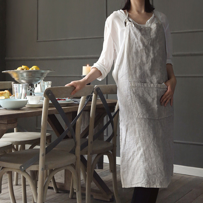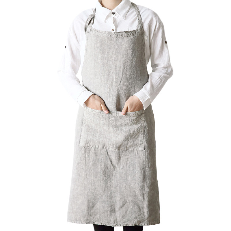 Calle New Pin Nordic Japanese Style Apron Restaurant Cafe Kitchen sleeveless linen long edition