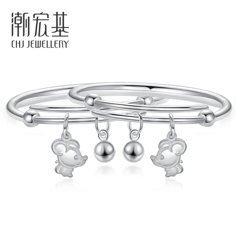 Chaohongji jewelry mouse Small auspicious silver child bracelet Happy auspicious silver bracelet Baby bracelet Foot silver bracelet Zodiac rat