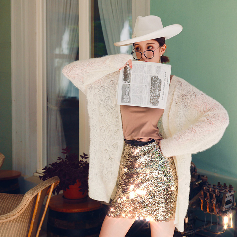 ALUONLINESHOP "Gold Coast" high-definition flash piece blingbling shape texture package hip skirt