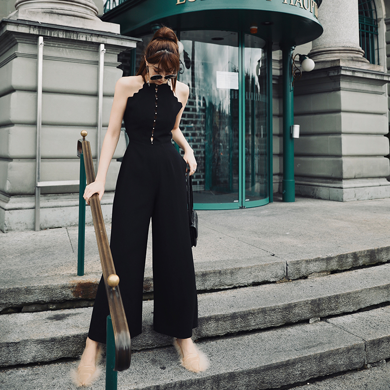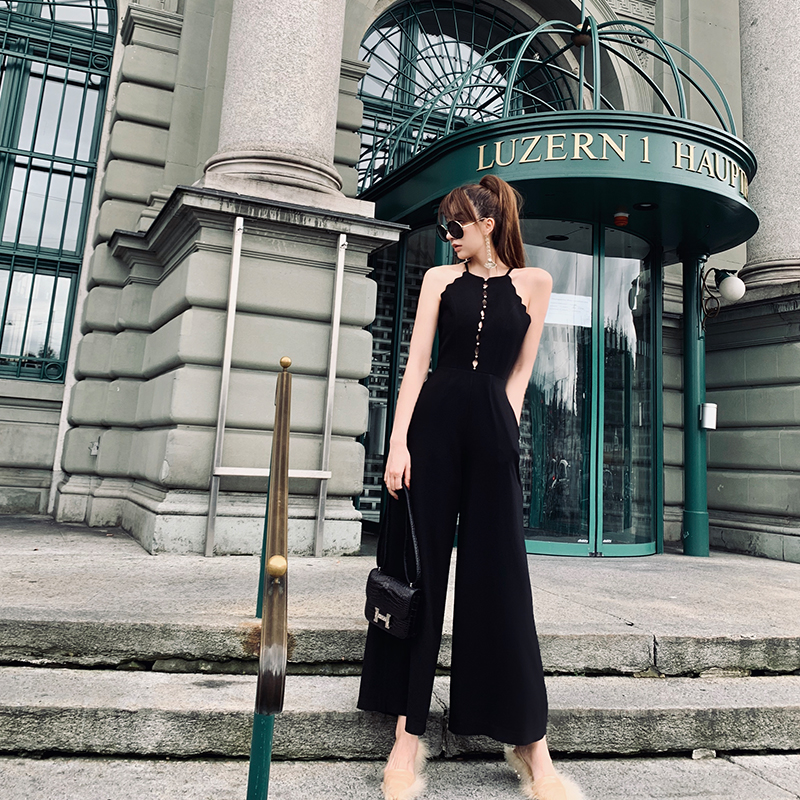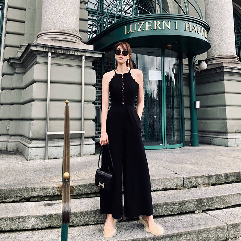 ALUONLINESHOP ins Long leg secret control eye-catching coarse texture jumpsuit