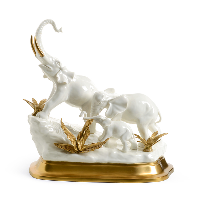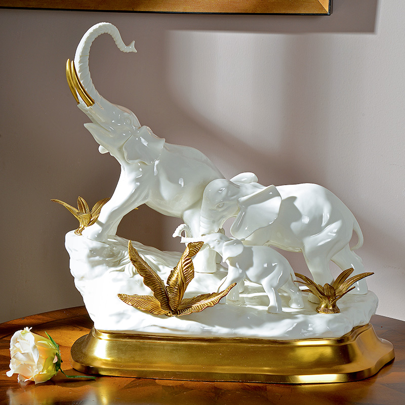 Eurostyle Creativity Mother-son Elephant Xuanguan Living Room Swaying Pieces Ceramic Matching Bronze Elephant Styling Decorative Pendulum to Gift New Residence Gifts