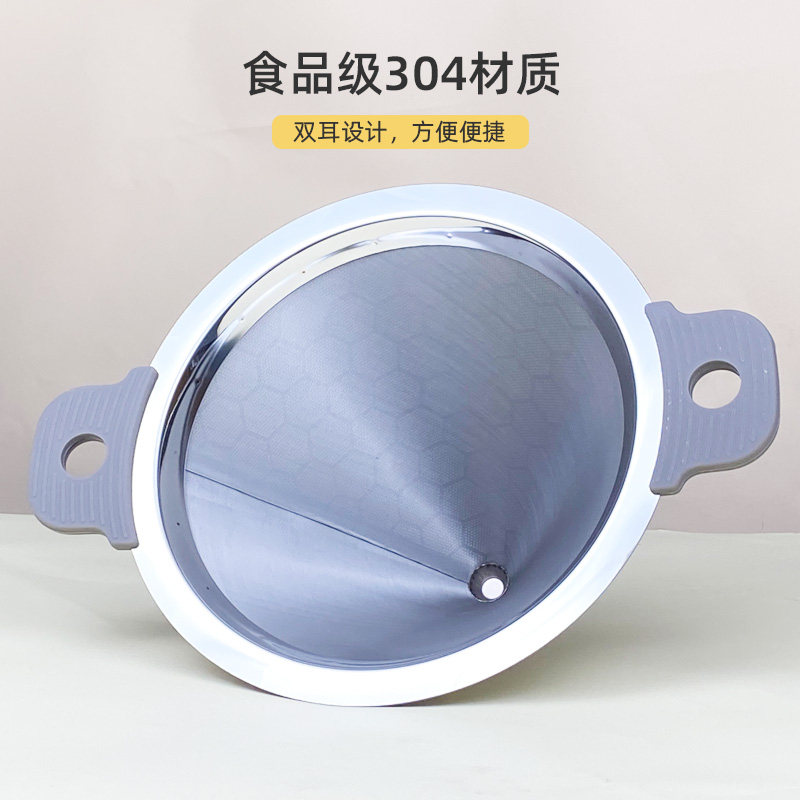 Milk tea shop special stainless steel tea filter funnel milk tea bucket can use tea powder 400 mesh ultra-fine double ears