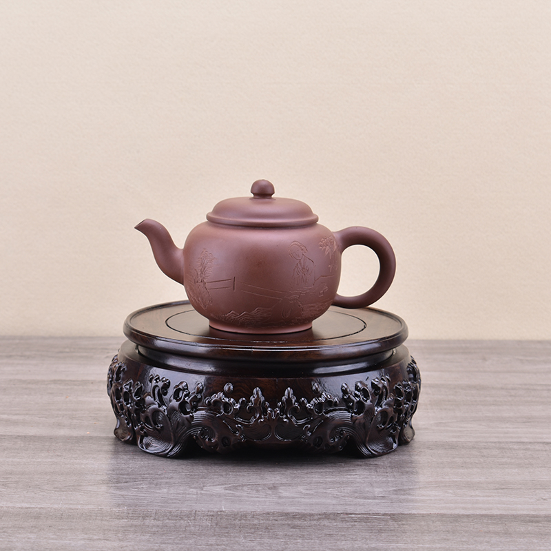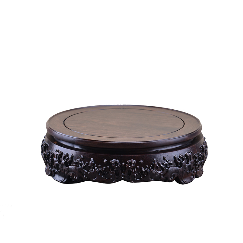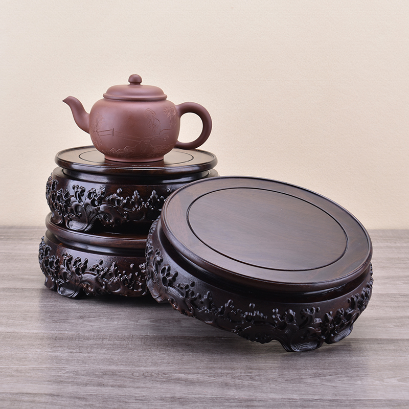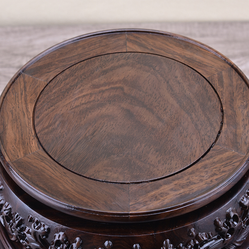 Redwood carving round vase base Guanyin Buddha statue flower pot teapot jade head wood bracket solid wood ornaments base