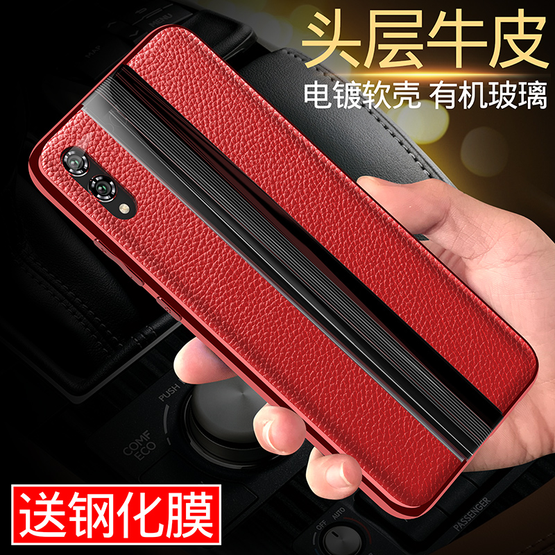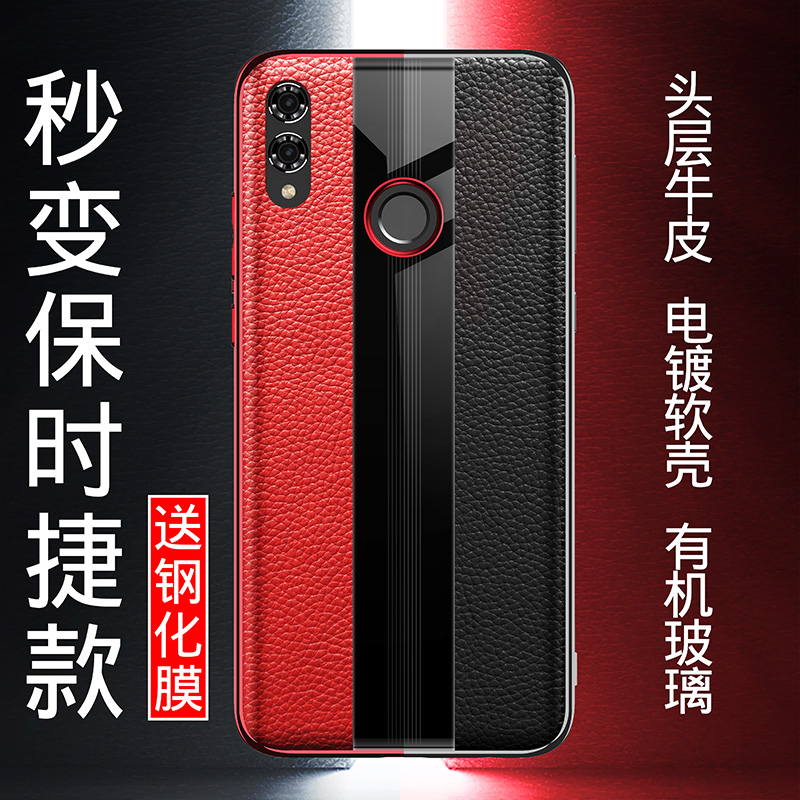 Applicable Huawei Honor 8x mobile phone protection shell real cow leather 8x max protective sheath honor liquid silicone gel Soft full bag border wrestling Tide Cards Personality Creative Glass Mirror upscale ultra-thin rear cover men and women