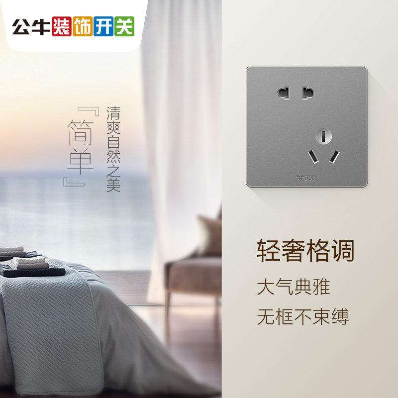 Bull socket Flagship wall switch socket Official panel concealed oblique five-hole socket 86 type 5-hole G12 gray