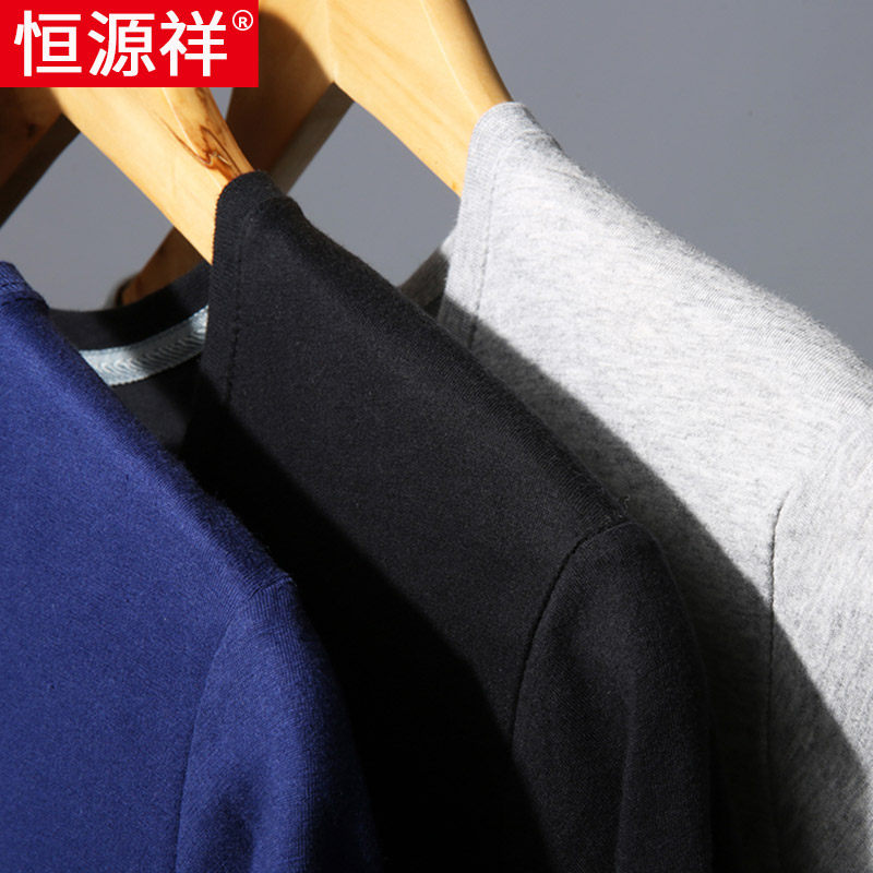 Hengyuanxiang long-sleeved T-shirt men's round neck pure cotton trend men's casual inner tie clothes inner tie Dad autumn T-shirt Men's