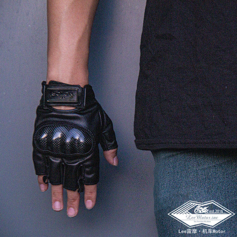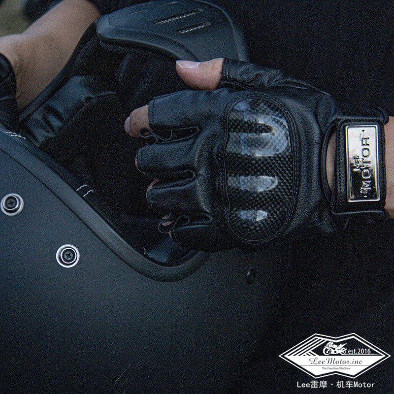 Remo Locomotive Locomotive Leather Gloves summer half finger carbon fiber anti-fall touch screen riding dew finger gloves