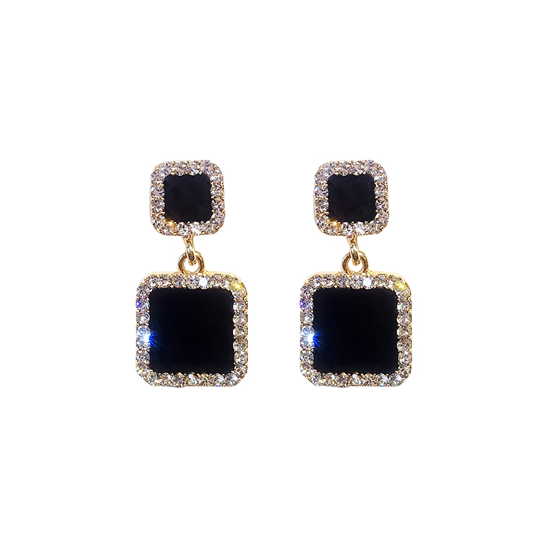 925 silver needle with ear clip without earhole in black rhomboid ear pin