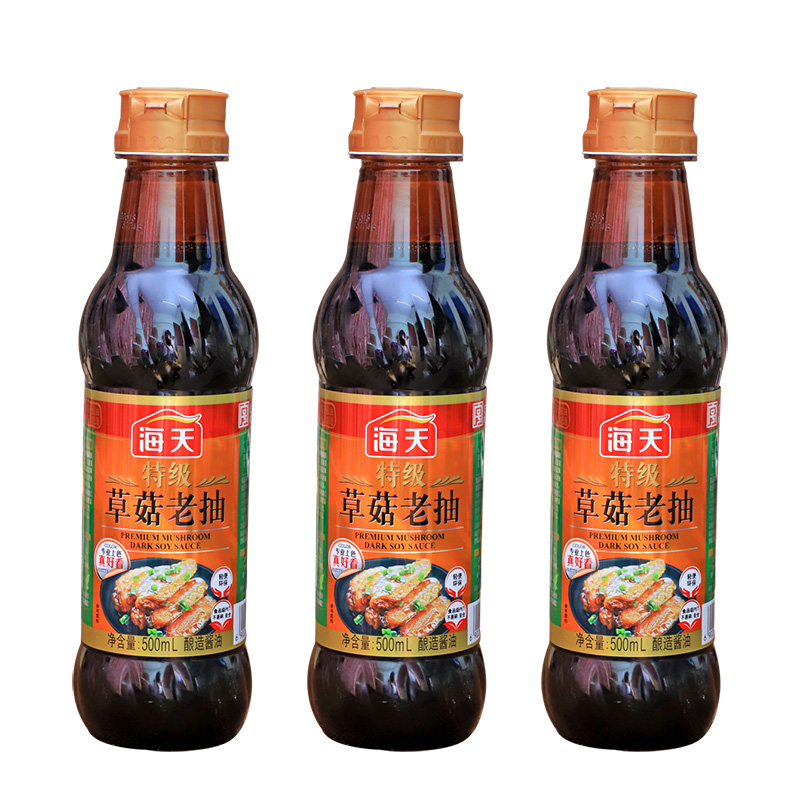 Sea grass mushroom dark soy sauce Soy sauce 500ml*3 bottles Brewing soy sauce Stir-fry color fast braised soy sauce seasoning