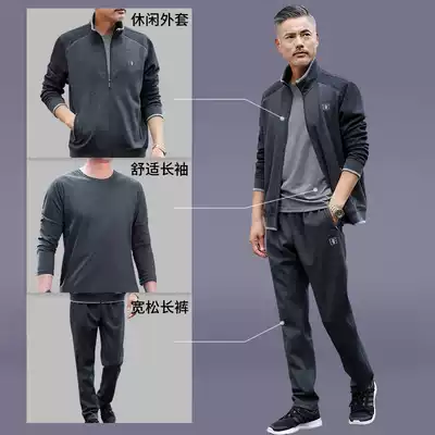 Middle-aged sports suit men's large size father autumn coat elderly casual wear men's three-piece running suit