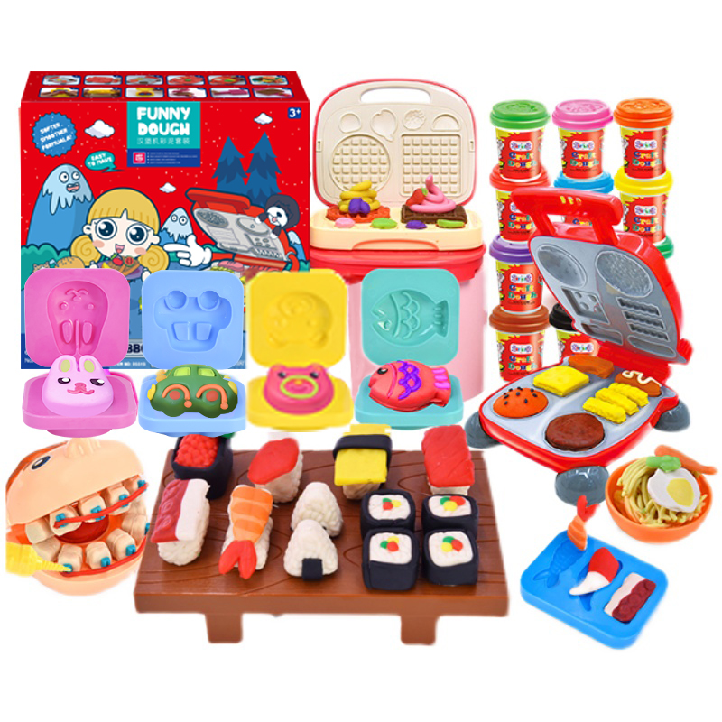 Burger machine (6 color mud) 8 color mud hamburger waffle rice ball mold *412 color mud double breakfast sushi and other set refills 12 colors (672g)