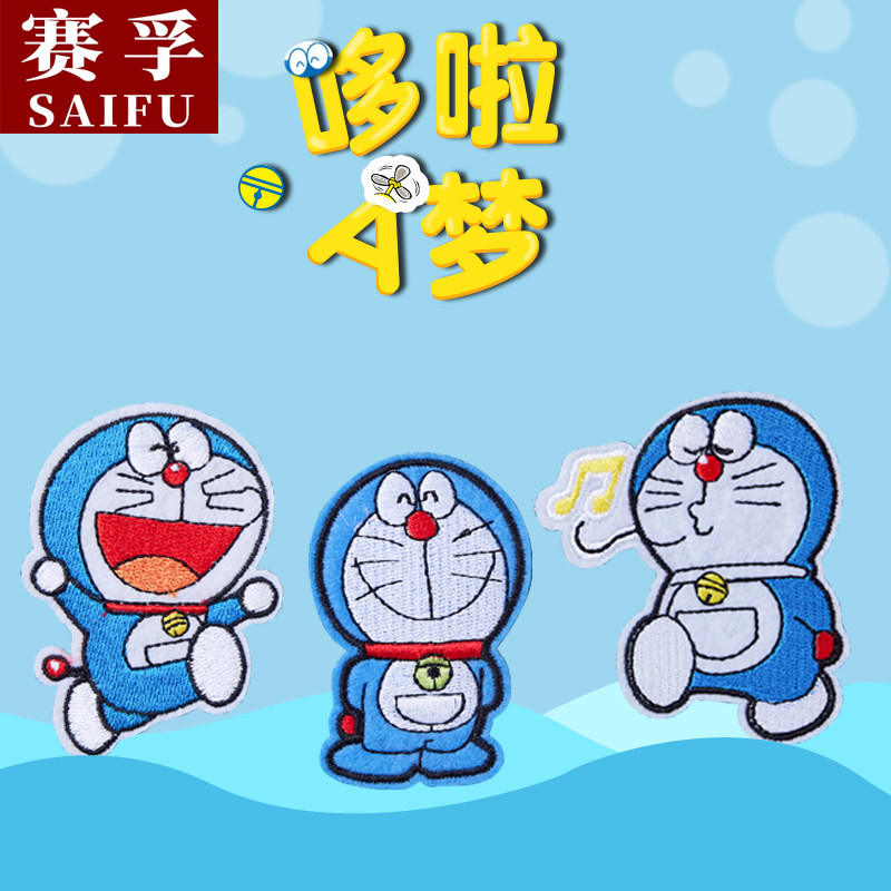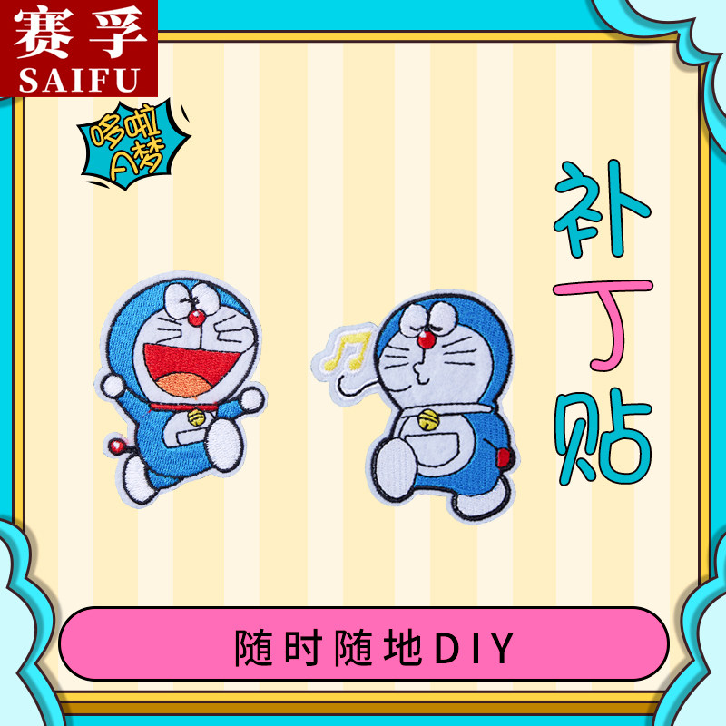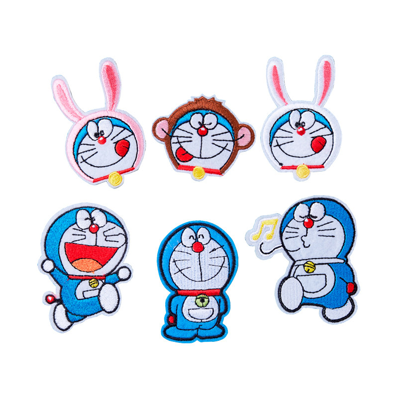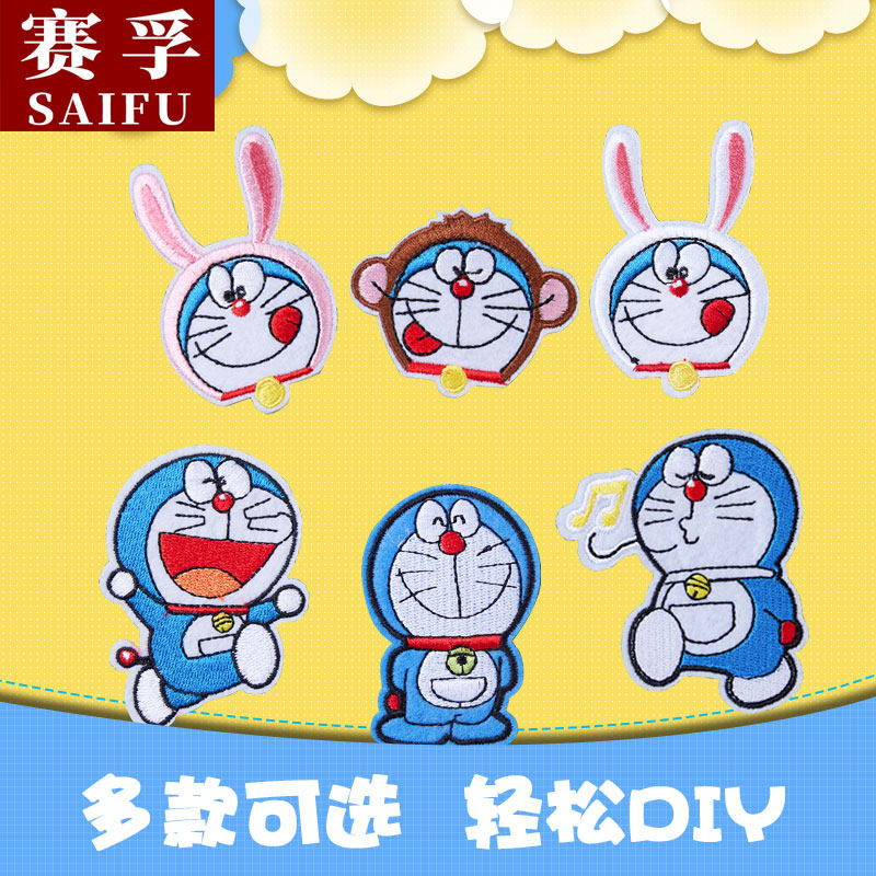 Embroidery breaking holes sticking to machine cats Doraemon A dream bugg with personality cartoon Cartoon Clothes T-shirt Handmade DIY Embroidered