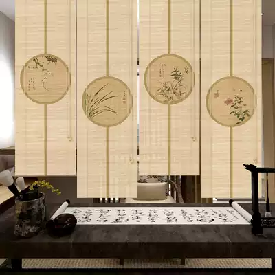 Youlan picturesque printing bamboo curtain roller curtain curtain porch background decorative painting hanging curtain Hand-pull lifting bamboo roller curtain