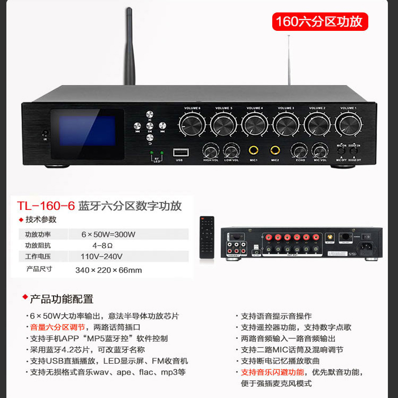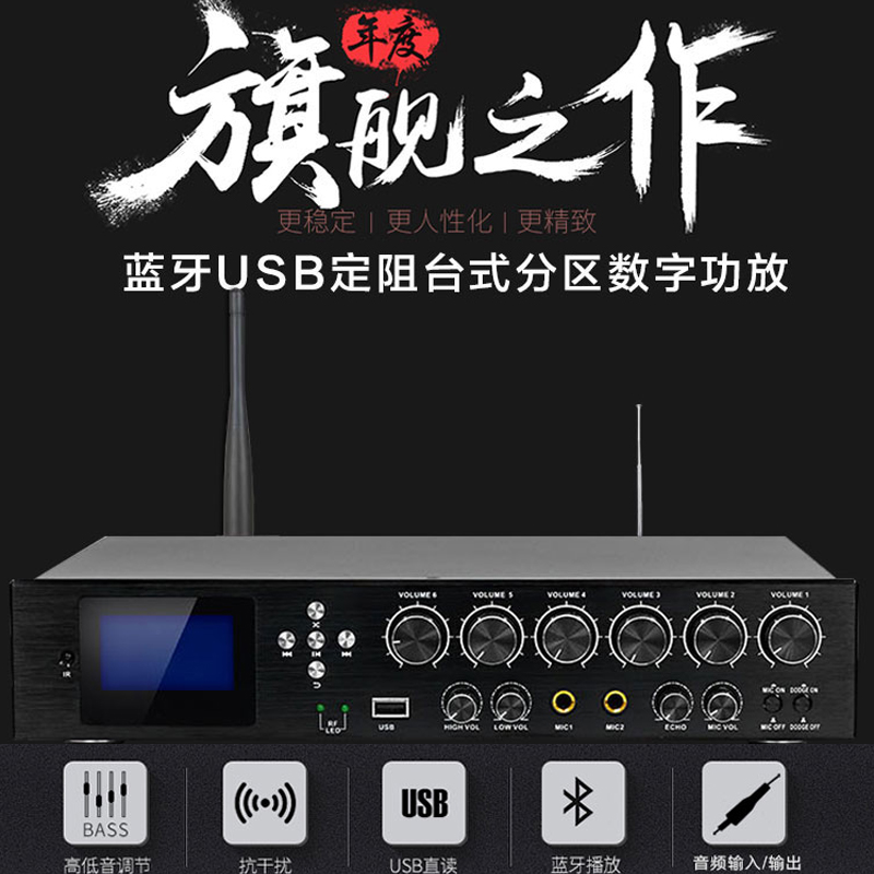 Nature music background music Multi-zone fixed resistance desktop amplifier High-power USB Bluetooth AUX digital amplifier conference