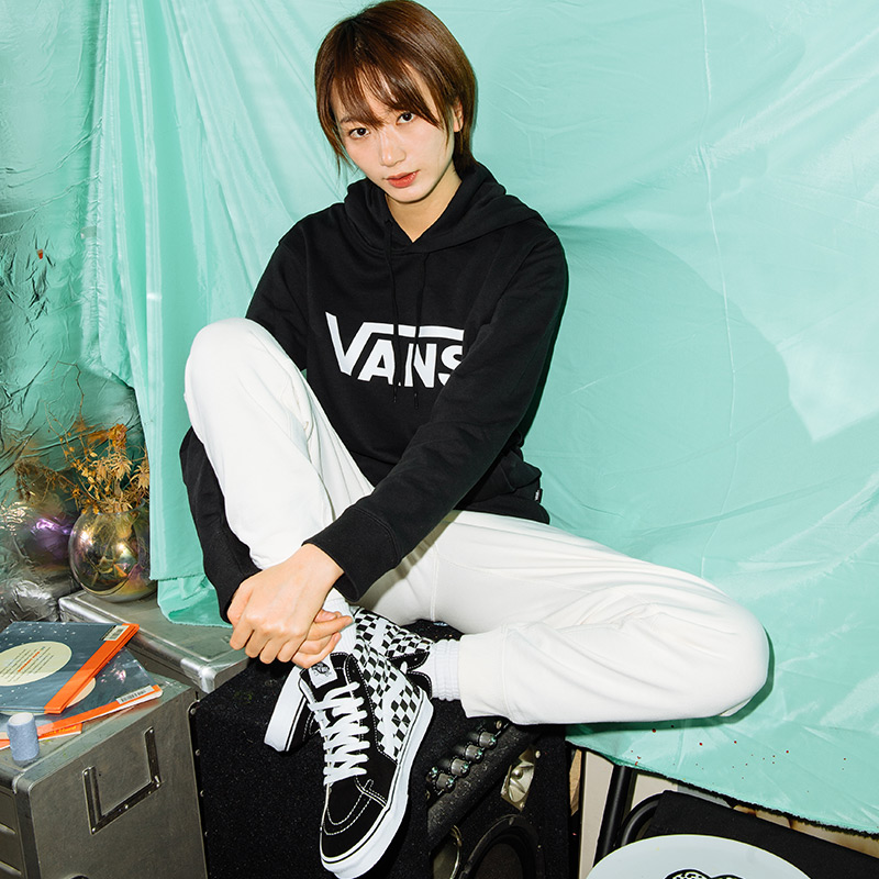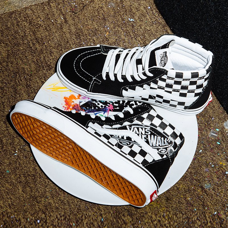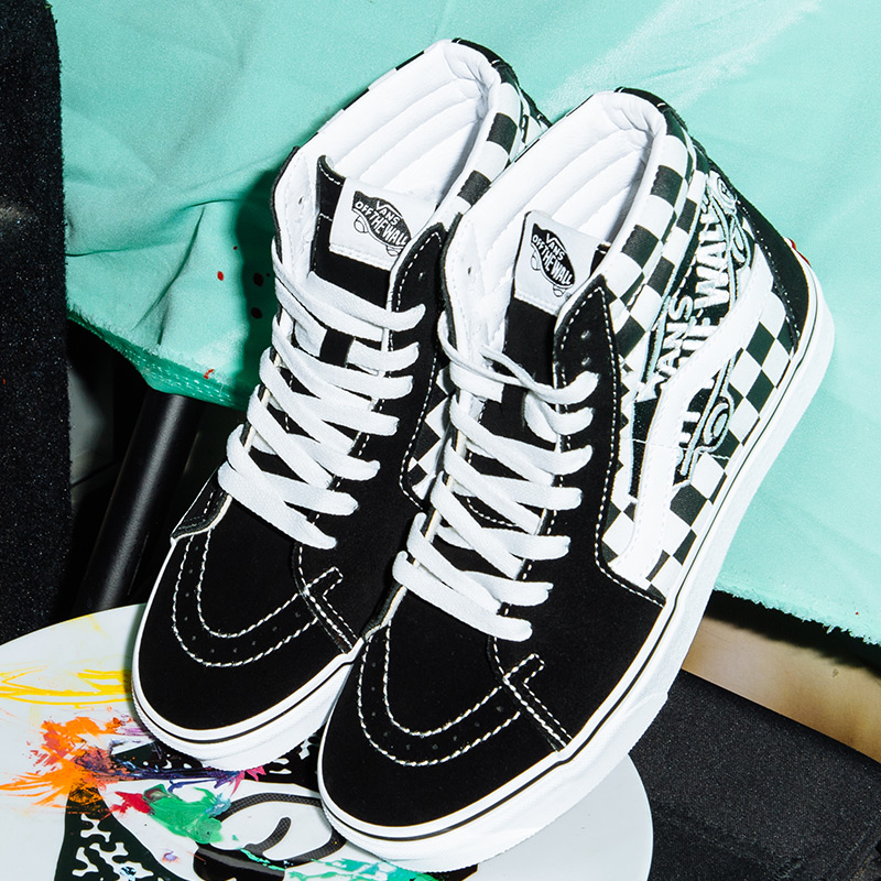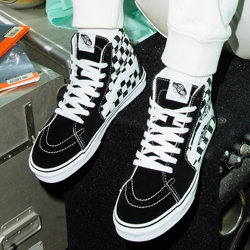 (Cherry Blossom Season) Vans Van Sans Official Black Chessboard Lattice elements Retro men and women SK8-Hi board shoes