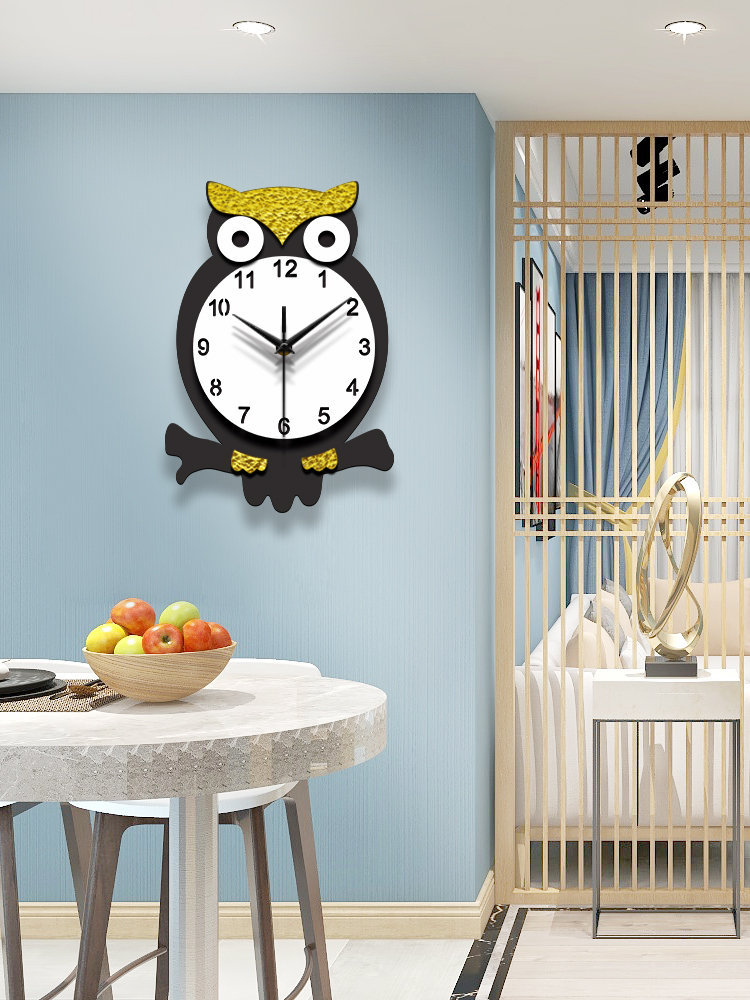 Cute cartoon children's wall clock fashion clock Bedroom owl creative mute personality home decoration wall hanging watch