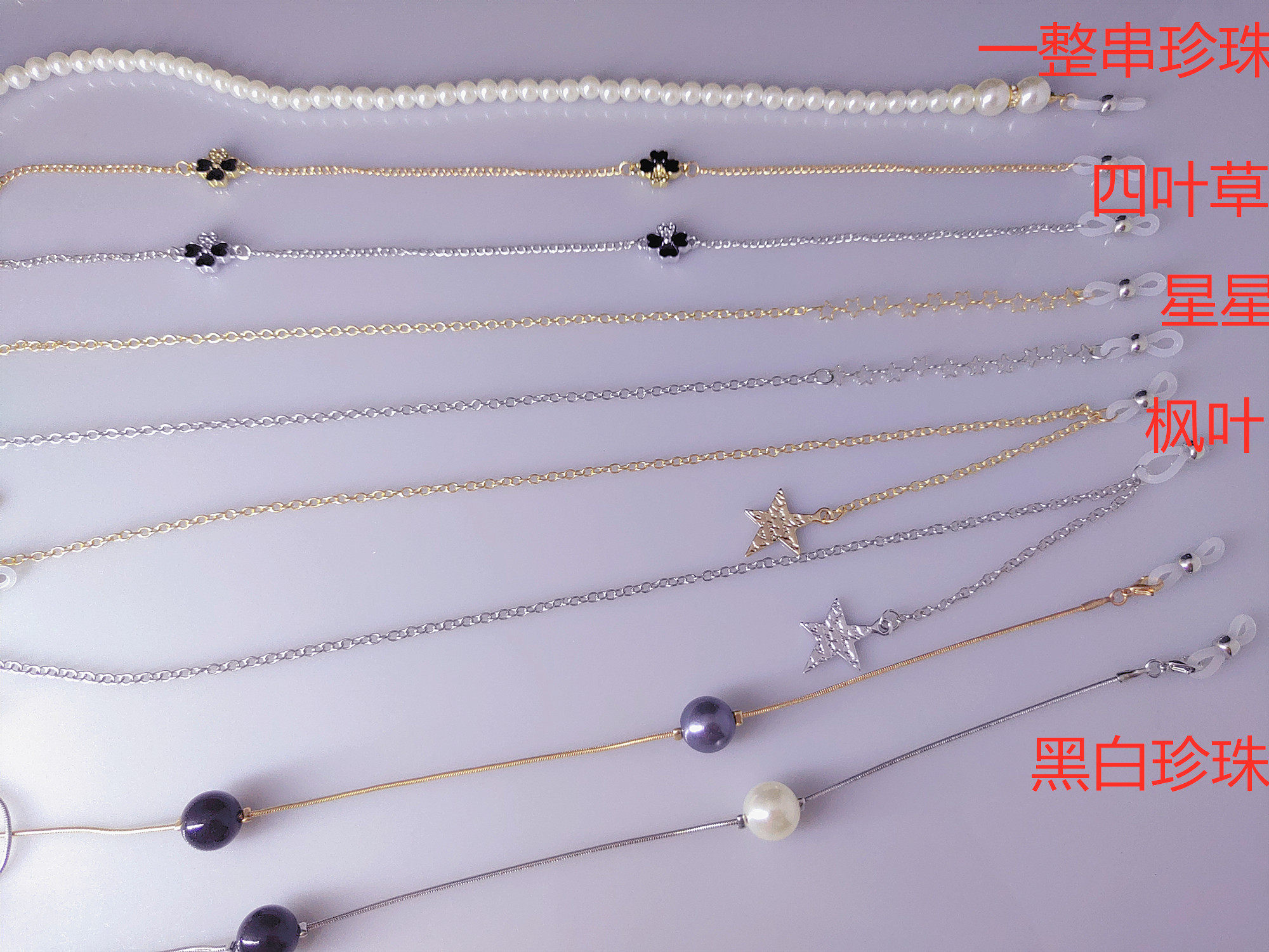Pearl Long Version Golden Pearl Long Version Silver acrylic Transparent White Acrylic Black Acrylic BRIGHT RED COLOR DIAMOND DEPOSIT GOLD COLOR DIAMOND DEPOSIT GOLD RICE BEADS GOLD RICE BEADS SILVER FOUR-LEAF STRAW BALM