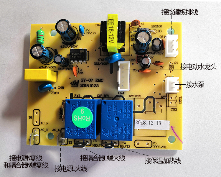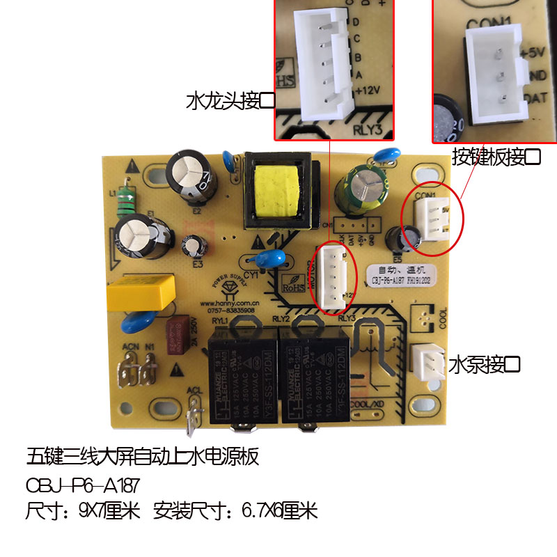 Circuit board power board button board automatic water supply tea bar machine accessories 5 keys 3 lines large color screen circuit board SY-07