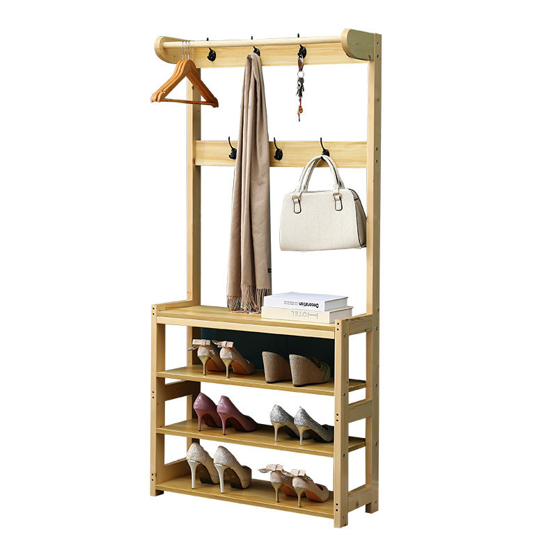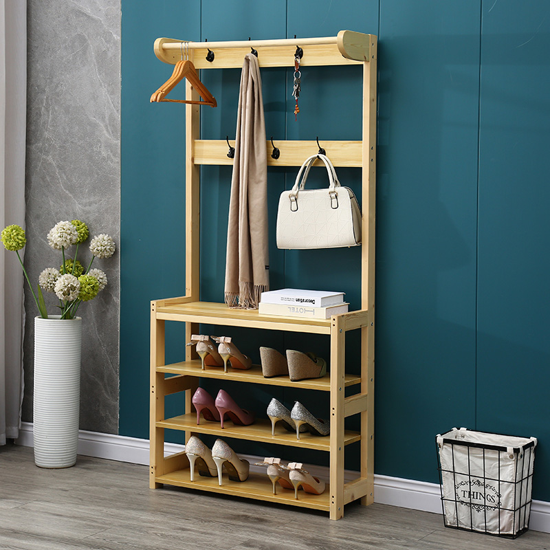Multilayer clothes hat rack floor solid wood home living room shoe rack door hanger door hanging clothes minimalist modern bedroom containing Xuanguan