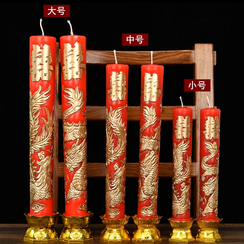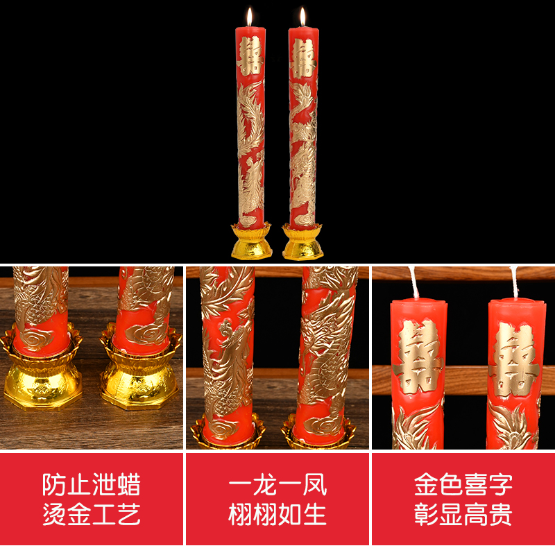 Wedding supplies Wedding dragon and phoenix candles Chinese wedding chapel Wedding red candle props Wedding decoration Golden happy candle