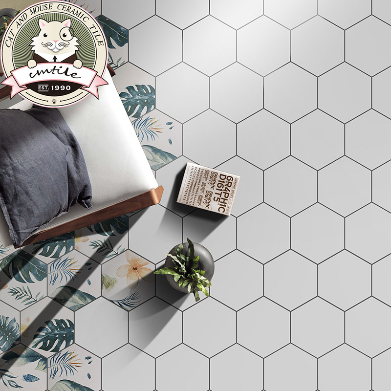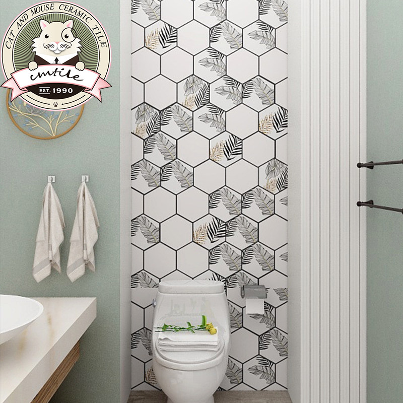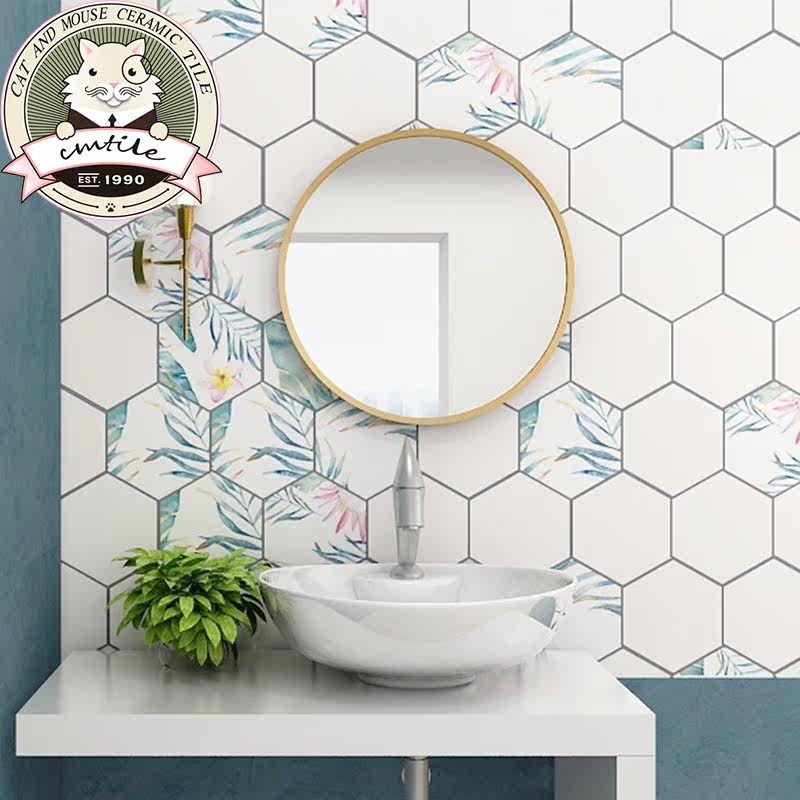 Candy glaze hexagonal tile bathroom kitchen balcony wall tile floor tile Nordic green plant flower piece 200*230