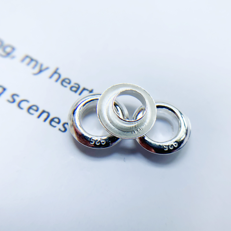 925 Pure Silver Patches Macroporous Fetal Hair Beads Silver Beads Silver Ring Chicken Eye Buckle Accessories 4 5mm Inner Hole Diameter