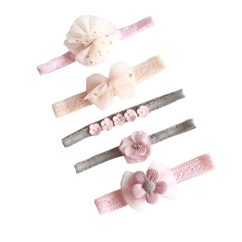 Pink one small yellow flower beige crown hair with red crown hair band blue can stand bow tie pink mesh yarn Butterfly knot one small pink flower crown princess hair with a small red pollen butterfly knot hair with yellow color