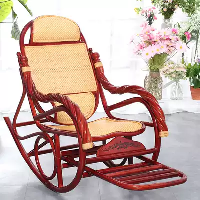 Rattan rocking chair Recliner Rocking chair Adult nap chair Elderly recliner Balcony lunch break rocking chair Natural real rattan chair