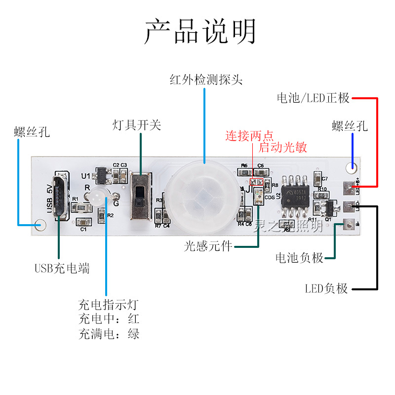 Light control Human body induction LED wardrobe light control board Clothing light Overall cabinet light USB charging infrared induction circuit board