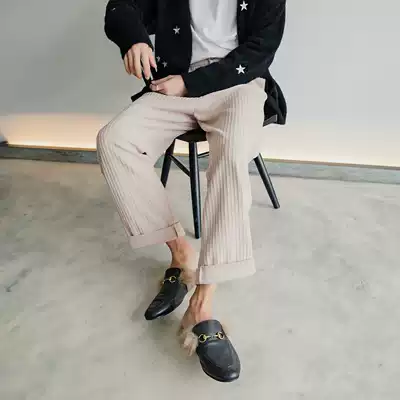 Sicilian men's spring trousers black loose men's casual knitted pants men's Korean version of the wide leg pants