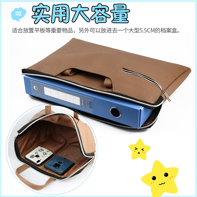 Ferry Beauty Brief PU Leather File Package Handheld briefcase for men and women Business office kit leather File bag Multi-layer pull chain Large-capacity waterproof Career handbag Canvas Document Bag Handbag