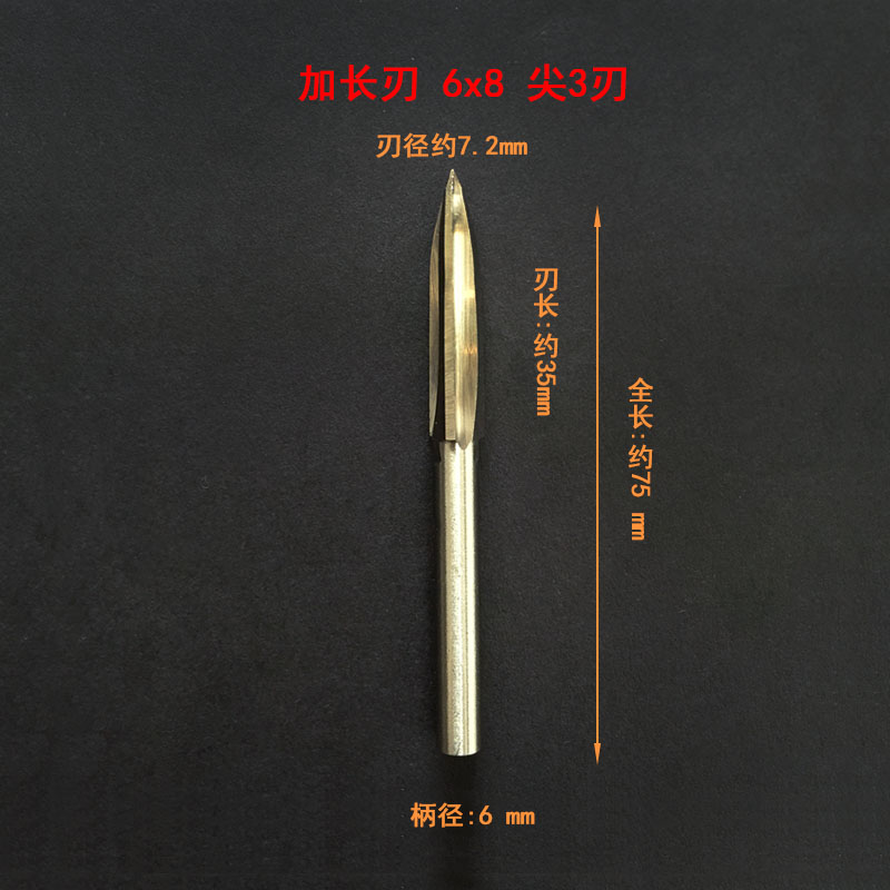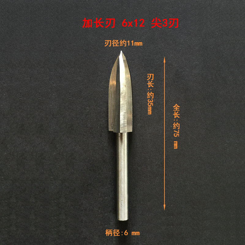 6 handle 35 lengthened tip 3-edged high speed mesh white steel knife electric root carved tip-shaped drill with high speed drilling tool bit wood carving sharp knife