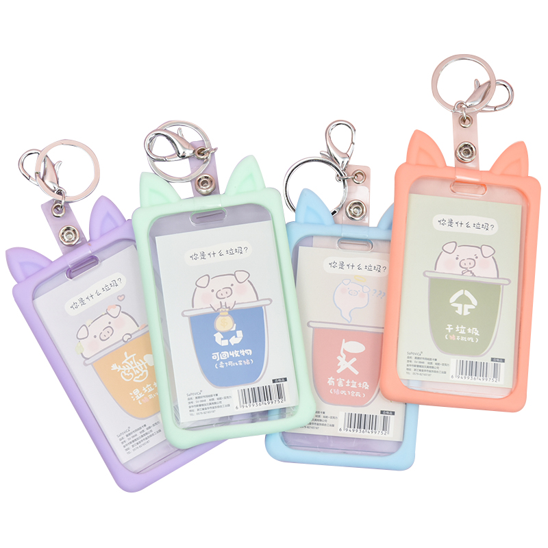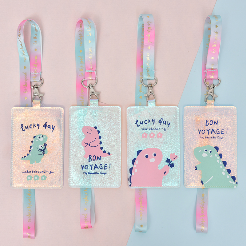 Creative cute teenage girl with hanging rope hanging neck and chest card PU chest card Entrance Door Access Bank Subway Bus Transportation Meal Card Student Campus Document Sleeve Work With Rope Loading card with rope