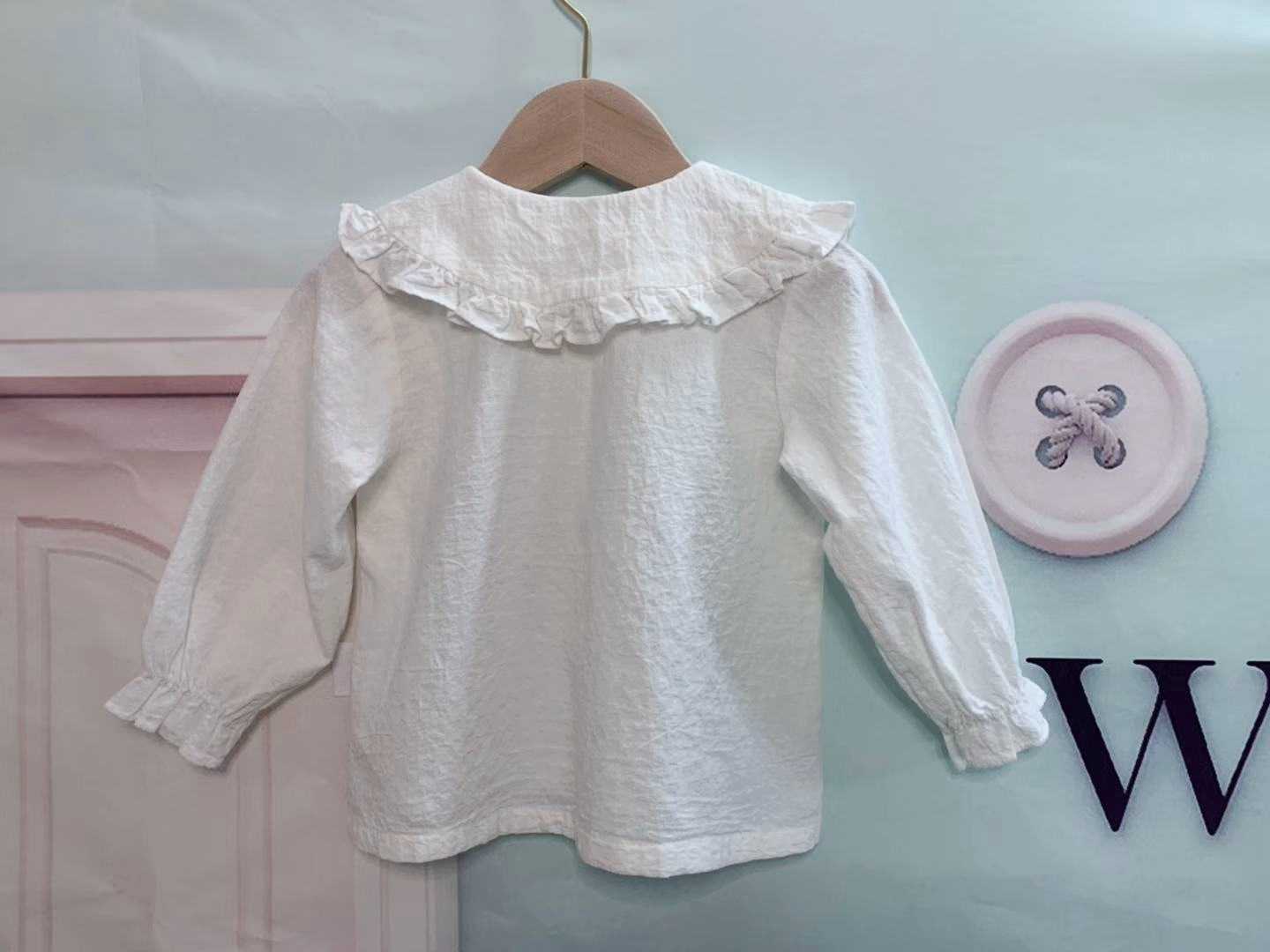 Girls' Shirts Korean Version 2019 Autumn Western Style Children's Baby Shirts Tops White Lace Collar Baby Shirts Pure Cotton